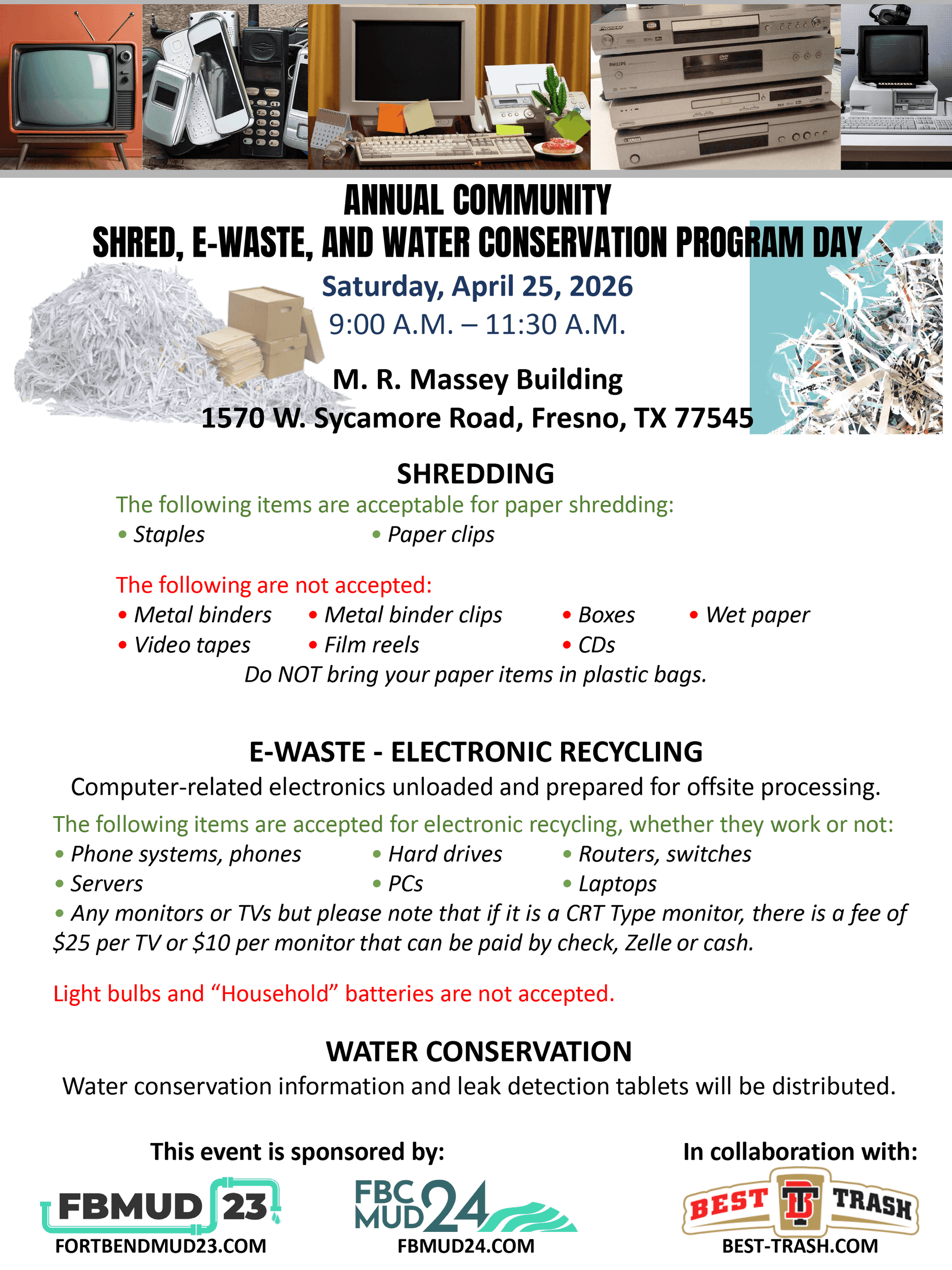 - This event is exclusively for residents of Fort Bend County MUD 23 and 24.